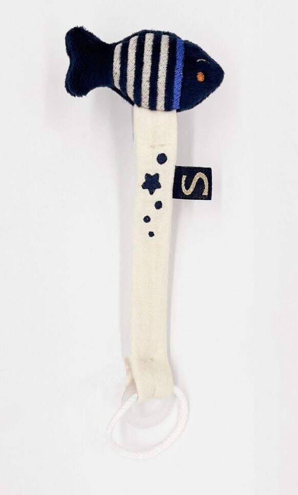 L'attache sucette Baby Sailor aux couleurs du thème sera l'accessoire idéal pour éviter à bébé de perdre sa sucette et prévenir les pincements de doigts, grâce à son attache spécialement adaptée aux bébés.