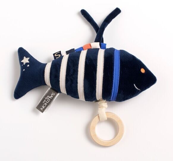 Découvrez le craqunat poisson musical de la collection Baby Sailor! Avec son lien, il s'accroche aussi bien aux barreaux du lit qu'au montant de la poussette afin de bercer bébé de sa douce musique.