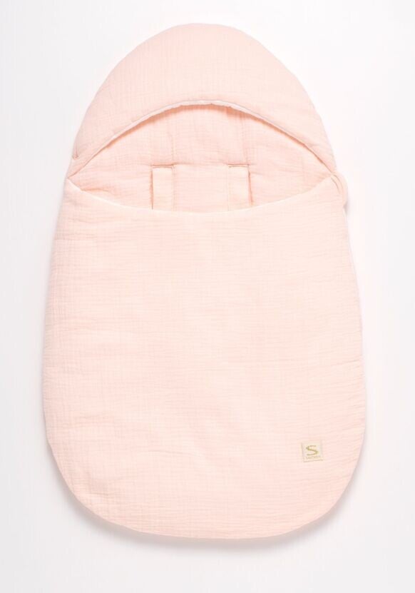 Pour accompagner bébé dès la sortie de la maternité, Sauthon a imaginé ce nid d'ange en double gaze de coton rose pétale.