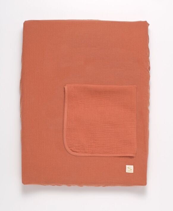 Matelas à langer avec sa housse en double gaze de coton et sa serviette - UNI TERRACOTTA Sauthon