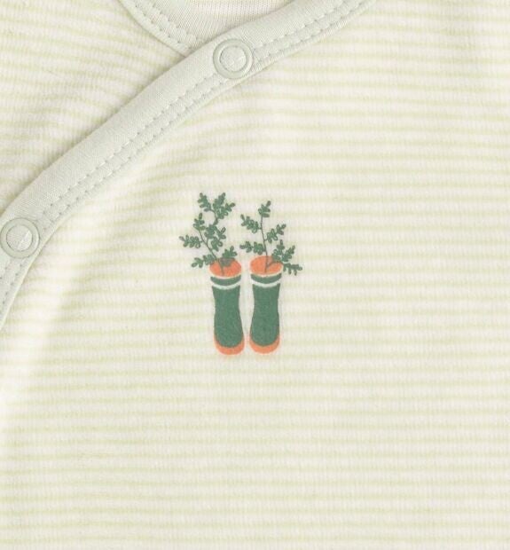 A la naissance, il est essentiel de maintenir bébé au chaud. Le pyjama Sauthon en velours préserve le confort et la chaleur des tout-petits. Le pyjama Botanica taille naissance vous séduira grâce à ses rayures vertes.