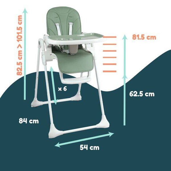 - Hauteur d'assise réglable permettant de placer la chaise contre une table après avoir retiré la tablette. Bébé se sentira parmi les grands (6 positions)