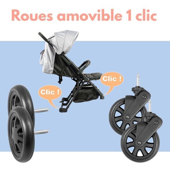 Notre poussette est d'une praticité insoupçonnée : elle se plie d'une seule main et possède un sac de transport pour pouvoir l'emmener partout. Aussi, le garde corps fait office de poignée lorsque la poussette est pliée.Voir plus