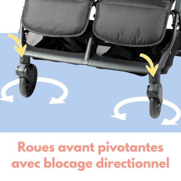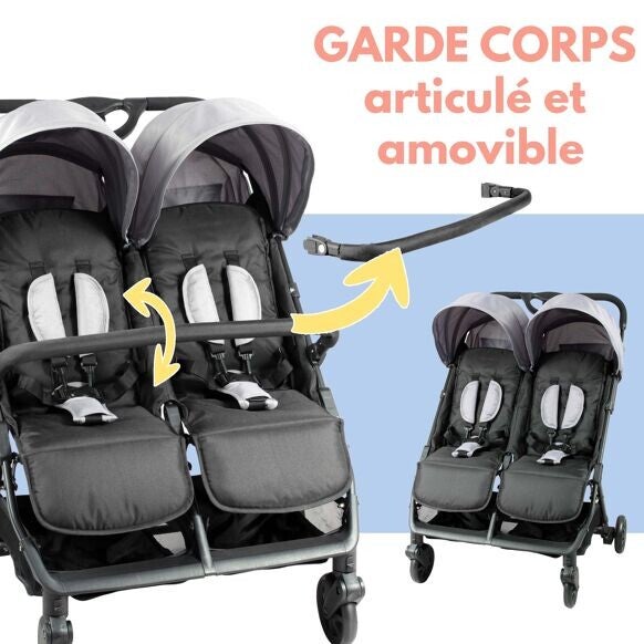 Avoir des jumeaux ou des enfants d’âges rapprochés donne deux fois plus d’amour… mais demande deux fois plus d’organisation ! La poussette double côte à côte de chez Bambisol vous fait vivre une vie plus facile dans un environnement urbain. Ultra compacte et légère, elle vous permet de vous déplacer avec vos enfants comme bon vous semble. Au-delà d'être facilement transportable, les dossiers et repose jambes réglables vous permettent d'utiliser votre poussette de la naissance jusqu'à 36 mois.