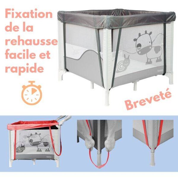 - Dépliage et pliage en un tour de main, moins de 2 minutes pour le parc et moins de 4 minutes avec la rehausse
