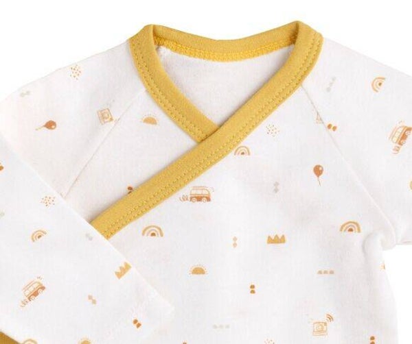 Les bodies Sunlight sont vendus par lot de 3 pour permettre aux parents de changer bébé plusieurs fois dans la journée. Leur forme croisée est très pratique et recommandée jusqu'au trois mois de l'enfant afin de faciliter l'habillage et le déshabillage. Les motifs de la collection Sunlight viennent décorer les bodies de bébé.