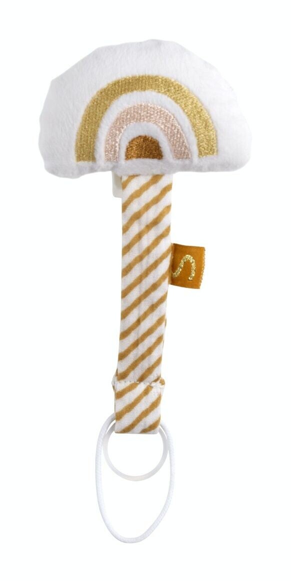 L'attache sucette Sunlight en forme de petit arc-en-ciel séduira bébé avec ses couleurs douces. Pratique, il évitera à bébé de perdre sa sucette et préviendra les pincements de doigts, grâce à son attache spécialement adaptée aux bébés.