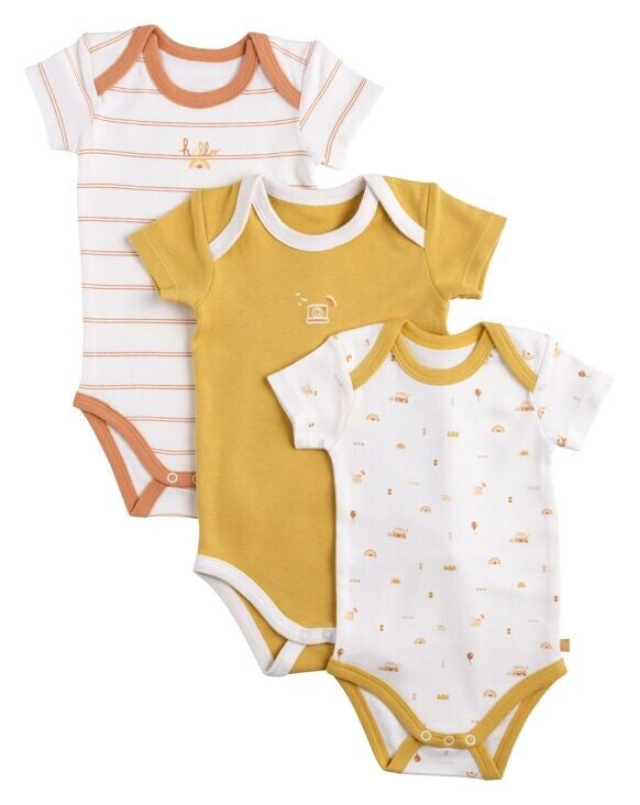 Les bodies Sunlight manches courtes sont vendus par lot de 3 pour permettre aux parents de changer bébé plusieurs fois dans la journée. Leur forme croisée est très pratique et recommandée jusqu'au trois mois de l'enfant afin de faciliter l'habillage et le déshabillage. Les motifs de la collection Sunlight viennent décorer les bodies de bébé.
