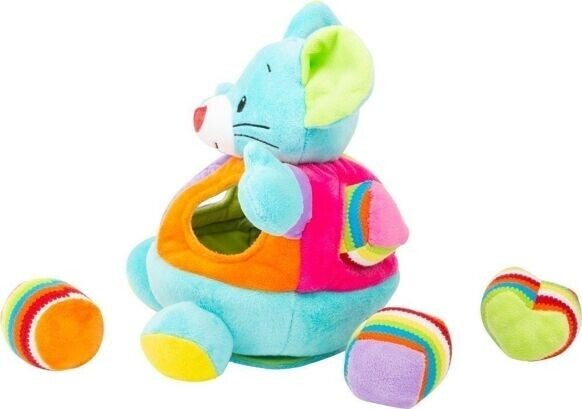Une souris vous invite à la découverte ! Avec cette souris en peluche colorée, les petits enfants entraînent leur motricité et leur pensée spatiale. Les différentes formes géométriques en peluche doivent non seulement être attribuées, mais elles fascinent également par leur fonction de grincement, de cliquetis et de crépitement. Lorsque la souris est retournée, les petits explorateurs peuvent se regarder dans le miroir. Un hochet attaché à l'élastique offre un plaisir supplémentaire avec deux anneaux. Après avoir joué, tous les ustensiles sont remis dans la souris. Un joli jouet à moteur !