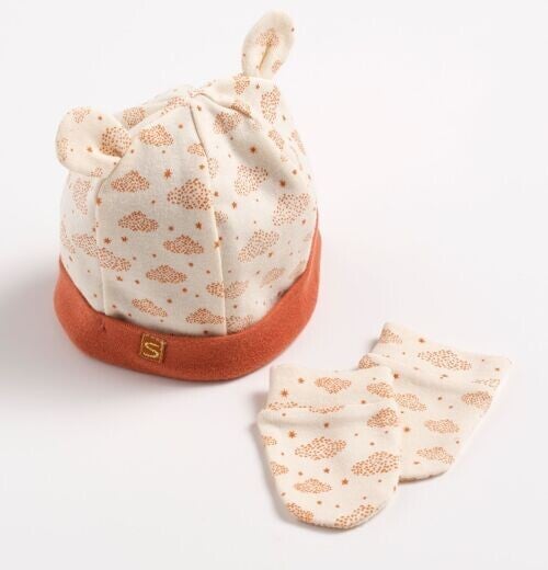 Lot bonnet et moufles bébé en coton - ORSINO Sauthon Sauthon