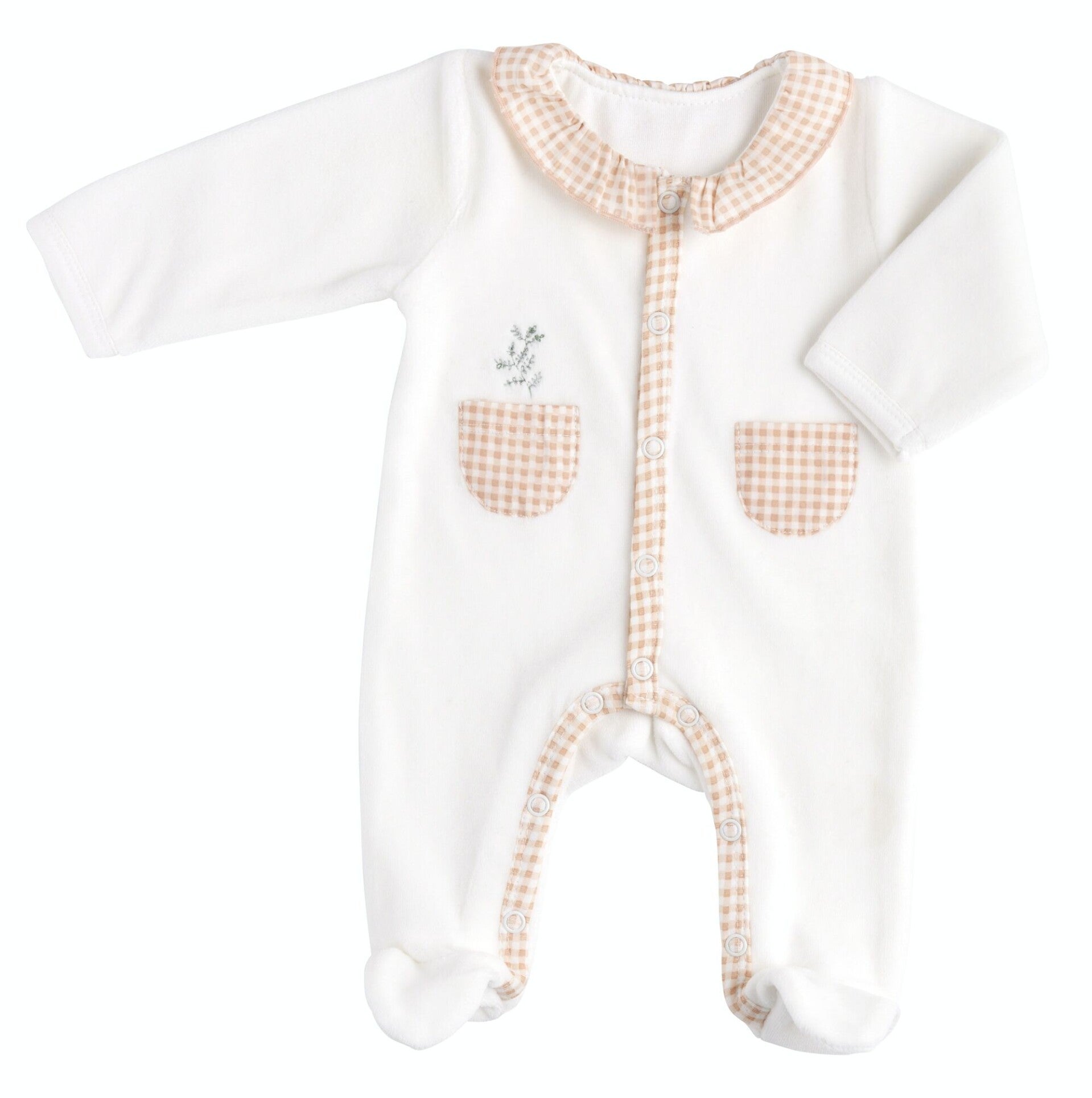 A la naissance, il est essentiel de maintenir bébé au chaud. Le pyjama Sauthon en velours préserve le confort et la chaleur des tout-petits. Le pyjama avec col Botanica taille naissance vous séduira grâce à son imprimé petit carreaux couleur nude classique-chic.