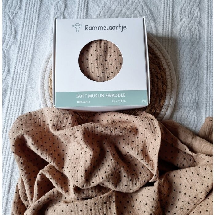 Mousseline hydrophile XL - Marron doux à pois 130x110cm