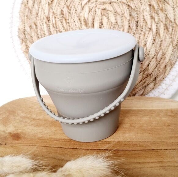 Gobelet à snack pliable en silicone avec couvercle - Sauge Rammelaartje Rammelaartje