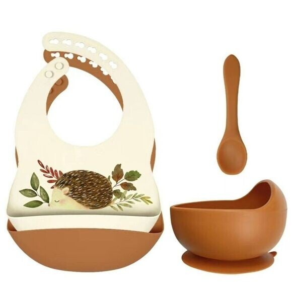 Set bavoirs silicone + bol avec ventouse et cuillère - Hérisson Rouille Rammelaartje Rammelaartje