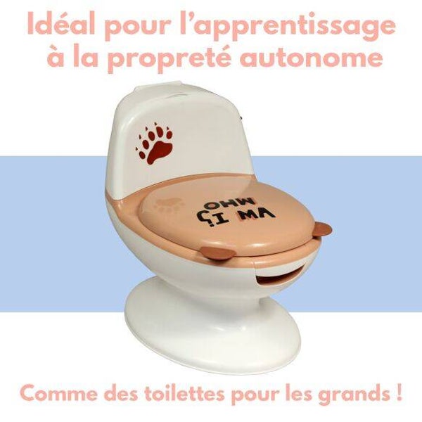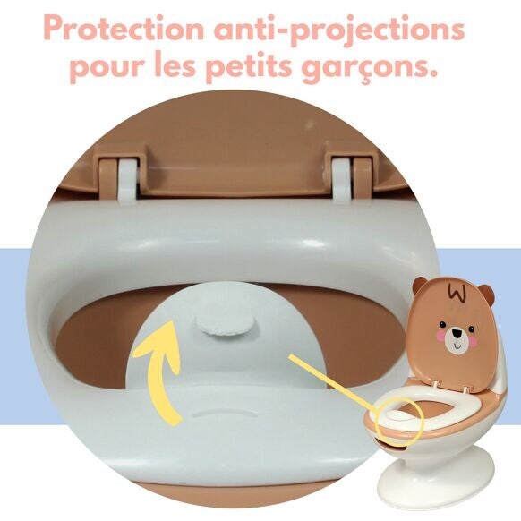 Le pot éducatif qui permet la transition entre la couche et le réducteur de toilettes. Le couvercle et le siège rabattable, la manette chasse d’eau, et la protection anti-projection pour les garçons favorise le design réaliste et donne une ressemblance avec les toilettes des plus grands.