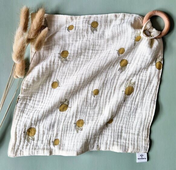 Doudou avec anneau de dentition en hêtre - Citrons Rammelaartje Rammelaartje