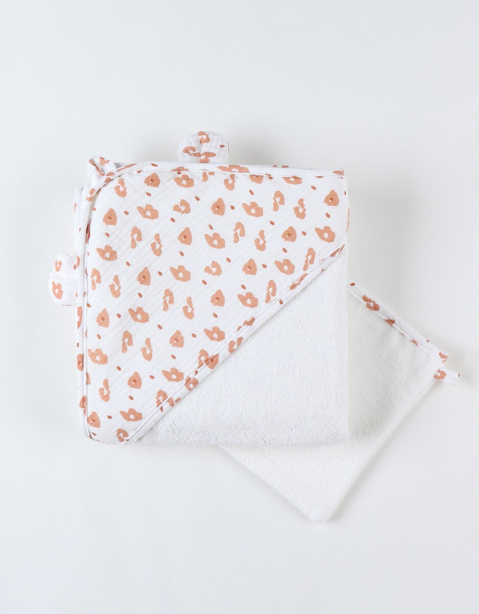 Set de bain léopard en éponge et mousseline, écru/terracotta Noukie's