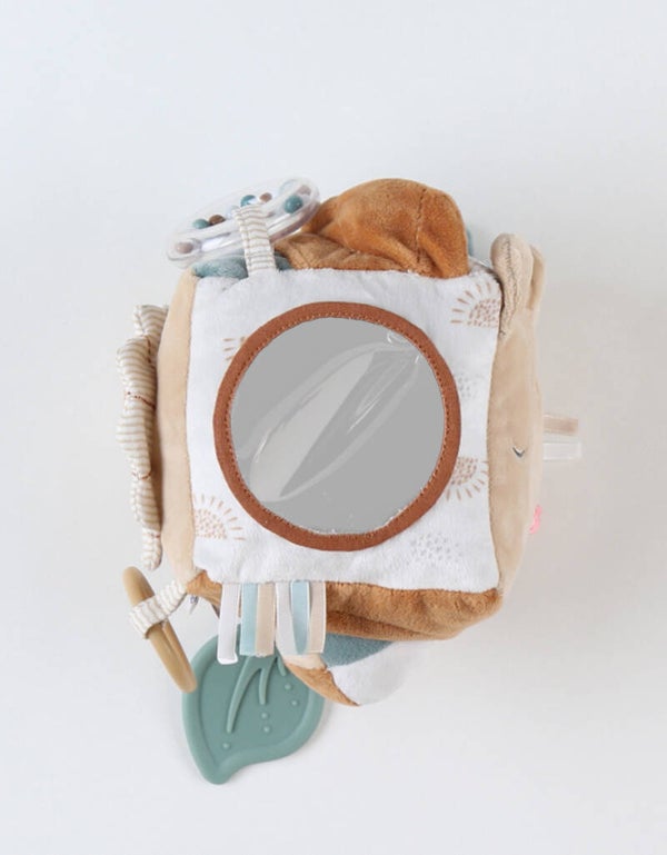 Le cube d'activités de la collection Babou & Kendi a été conçu pour favoriser la coordination entre l'œil et la main. Il développe également la motricité fine et les sens de bébé et deviendra très vite l'accessoire préféré des petits.