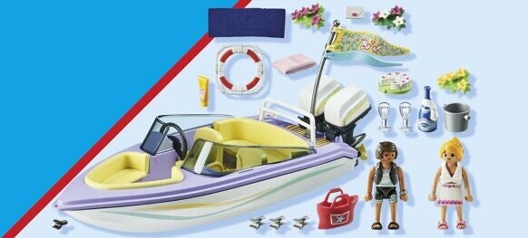 Comprend deux personnages, un bateau et de nombreux accessoires. Le bateau est compatible avec la réf 7350, qui permet de le piloter à distance.