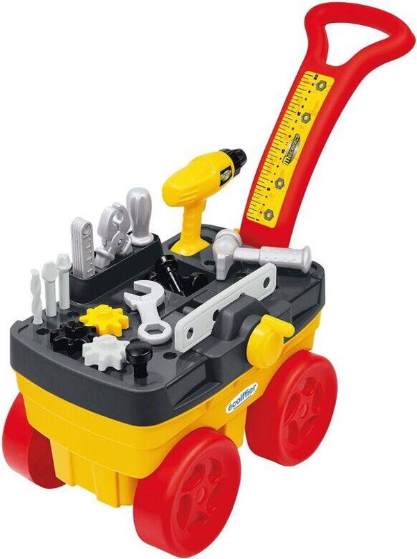 Ce chariot est très complet et pratique pour transporter les outils dans toutes les pièces de la maison. Avec son couvercle qui sert de base de jeu, il contient de nombreux outils dont un étau fonctionnel. 19 pièces. Dès 18 mois. Origine France Garantie