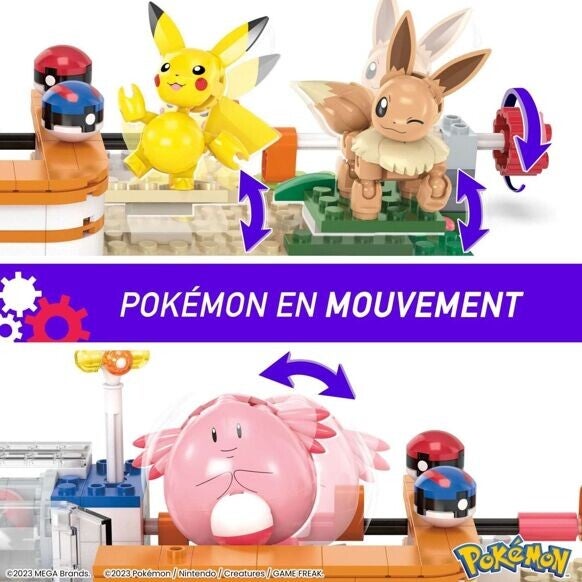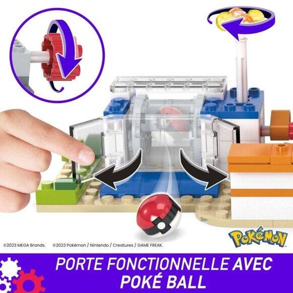 * Coffret de construction Centre Pokémon de 648 pièces, dont la nouvelle brique de mouvement pour animer la scène