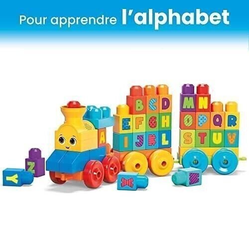 Mattel - réf : FWK22 - Mega Bloks - Le Train de L'Alphabet - Cubes de Construction - 50 Pièces - 12 mois et plus Mattel Mattel