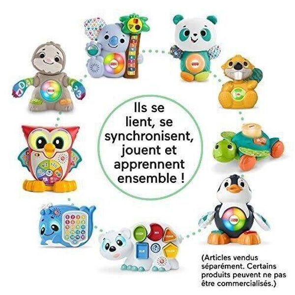Offrez des moments de jeu super chouettes avec Élisabeth la Chouette, qui fait partie de la gamme Linkimals de Fisher-Price. Lorsque l’enfant appuie sur les boutons sur le ventre de la chouette et la berce, cette amie expressive s’illumine de couleurs vives et active plus de 90 chansons, sons et phrases pour lui apprendre à compter de 1 à 20 et lui faire découvrir l’alphabet, la météo, les émotions et plus encore. Placez Élisabeth la Chouette à proximité d’un ou de plusieurs autres Linkimals pour qu’ils se parlent, chantent, s’illuminent et jouent ensemble ! (Autres jouets vendus séparément)