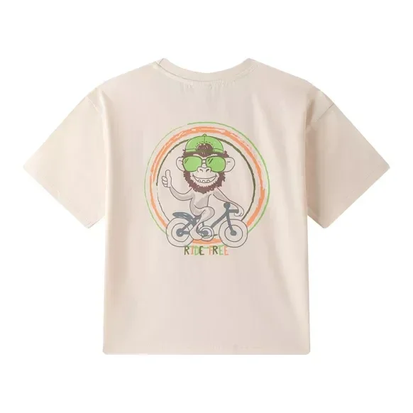 T-shirt en coton à manches courtes pour garçon avec un col ras du cou. Imprimé singe sur le devant et le dos.