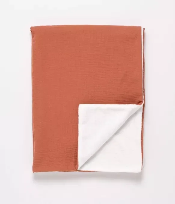 Couverture bébé en gaze de coton et intérieur polaire UNI TERRACOTTA