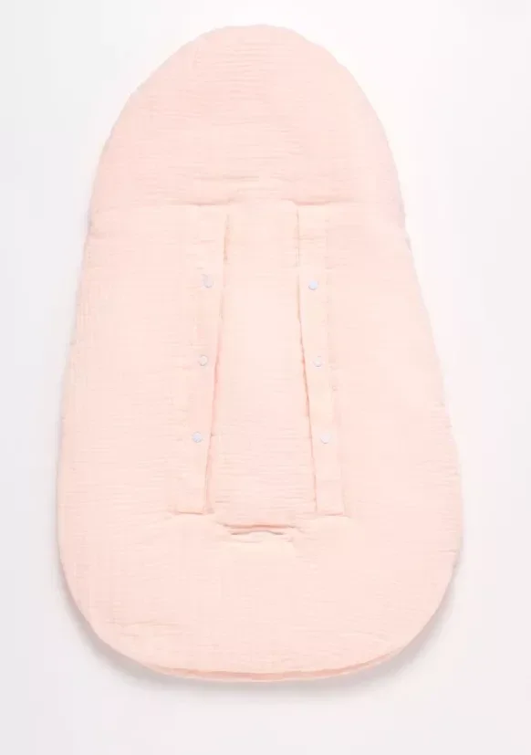 Pour accompagner bébé dès la sortie de la maternité, Sauthon a imaginé ce nid d'ange en double gaze de coton rose pétale.