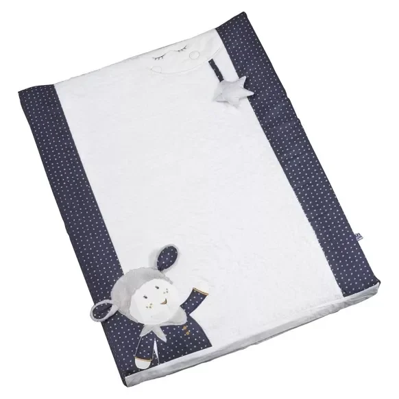 Petit matelas à langer déhoussable pour une plus grande facilité d'utilisation. Merlin avec ses oreilles toutes douces viendra chatouiller les petits pieds de bébé et lui permettra de passer un moment agréable lors du change
