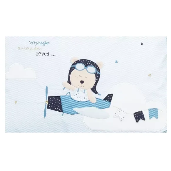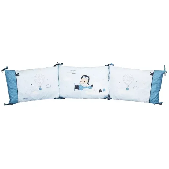 Ce tour de lit déhoussable Lazare, s'adapte au lit 120x60 ou 140x70. Lazare, l'ourson voyageur emmène bébé dans sa montgolfière au pays des rêves. Son design actuel apportera une touche ludique dans la chambre de vos petits-garçons.
