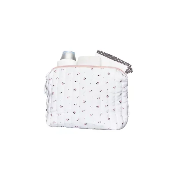 Décorée aux couleurs de Miss Fleur de lune et assortie au matelas à langer de voyage, cette trousse est idéale pour y glisser l'essentiel pour la toilette et les soins de bébé lors de vos déplacements. Le tissu intérieur est déperlant et se nettoie facilement d'un coup d'éponge.