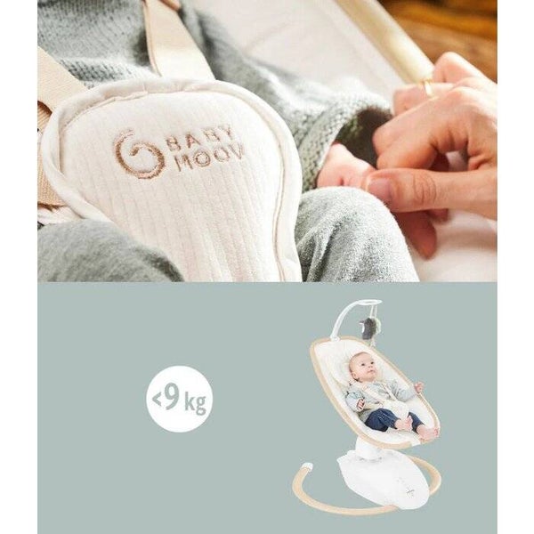 La balancelle bébé qui allie style et confort ! Découvrez la nouvelle Swoon Hoop, notre balancelle bébé conçue pour offrir à votre tout-petit le confort et la sécurité dont il a besoin, tout en vous permettant de soulager vos bras. Avec un design épuré, des tons naturels et des couleurs tendances, cette balancelle bébé s'intègre parfaitement à votre intérieur tout en vous offrant une multitude de fonctionnalités pratiques. Vous pouvez ajuster la durée du bercement de 10 à 30 minutes selon vos besoins pour une sieste paisible ou un moment détente. Les 5 mouvements de balancements, aussi fluides que les bras des parents, associés aux 4 vitesses réglables, apaisent votre bébé en imitant les mouvements naturels. Utiliser la télécommande incluse pour régler la balancelle sans efforts. L'assise pivotante de la balancelle permet à bébé d'être toujours au cœur des moments en famille. Complète, la balancelle bébé vous propose 8 berceuses de mélodies apaisantes ou de sons de la nature pour endormir ou distraire bébé. L'inclinaison est réglable sur 2 positions pour s'adapter à chaque moment de la journée. Les deux jouets de l'arche de jeux stimulent les sens de votre bébé pour contribuer à son éveil. Lire moins