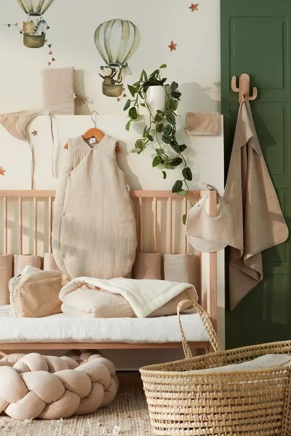 Sobre et chic, cette gigoteuse forme kimono en double gaze gaufré pur coton est entièrement doublée et ouatinée.