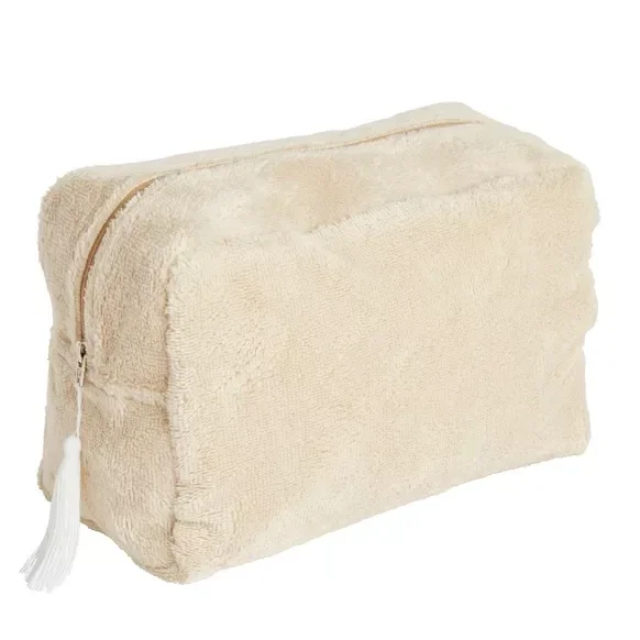 Une trousse de toilette au chic intemporel pour les tout-petits... mais aussi pour les mamans ! Avec son extérieur en éponge bambou ultra douce et sa doublure imperméable, elle est idéale pour transporter les produits de soin et de toilette de toute la famille. Petit pompon en coton sur le côté.