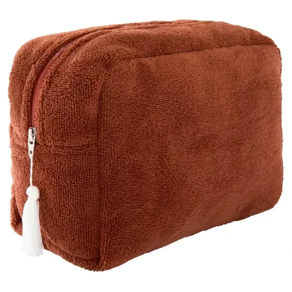 Une trousse de toilette au chic intemporel pour les tout-petits... mais aussi pour les mamans ! Avec son extérieur en éponge bambou ultra douce et sa doublure imperméable, elle est idéale pour transporter les produits de soin et de toilette de toute la famille. Petit pompon en coton sur le côté.