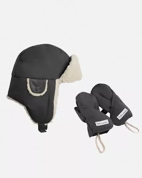 7AM - Ensemble bonnet et mitaines gris fumé Benji