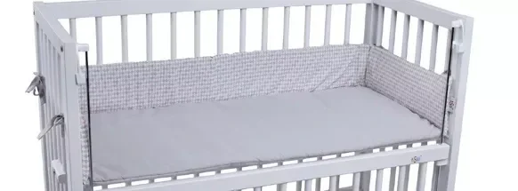 L'insert douillet en coton naturel est rempli de polyester et est fixé aux barres avec de petits liens afin qu'il reste en sécurité même pendant le sommeil le plus agité. Si un petit « malheur » survient, pas de problème : les éventuelles taches disparaîtront rapidement après un lavage en machine à 30°C.