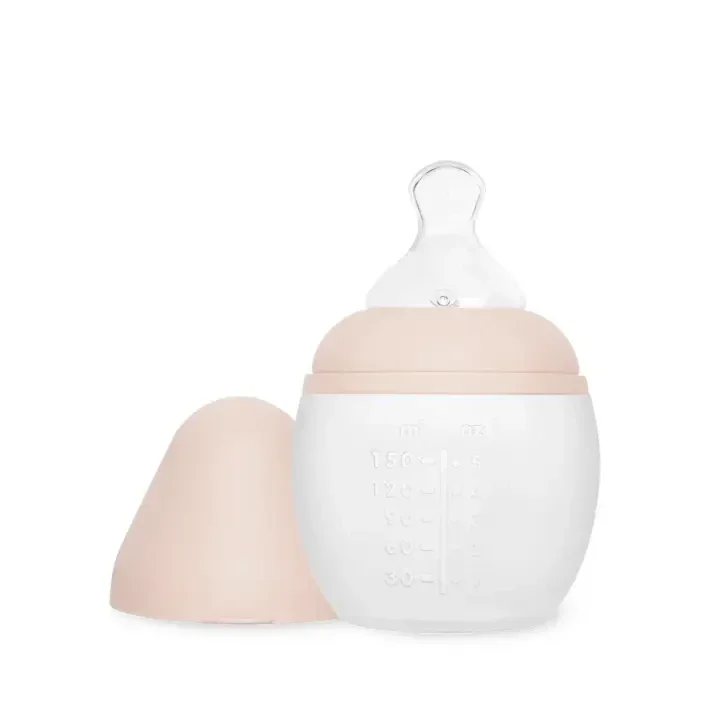 es biberons en 150 ml sont fournis avec une tétine Taille Unique (0-24 mois) débit moyen, idéal pour le lait infantile ou l’eau. Biberon conçu en silicone pur, de qualité médicale nouvelle génération, le biberons Élhée ne contient pas de bisphénol A (BPA) de bisphénol S (BPS) ni autre substance susceptible de nuire à la santé des bébés. Son système de fermeture unique et breveté exclut tout risque de contact du lait et de ses nutriments avec des matériaux autres que ceux de la bouteille et de la tétine en silicone (Zéro contact avec le plastique). DESCRIPTION • Tétine : physiologique et anti-colique extra-souple, à col large standard (interchangeable). • Design ergonomique : biberon semi-rigide pour une parfaite prise en mains • Facilité d’entretien : biberon compatible avec l’utilisation du lave-vaisselle, micro-ondes, congélateur, stérilisateur et chauffe-biberons (Maternity de Bébé Confort et Baby Milk Second de Béaba)