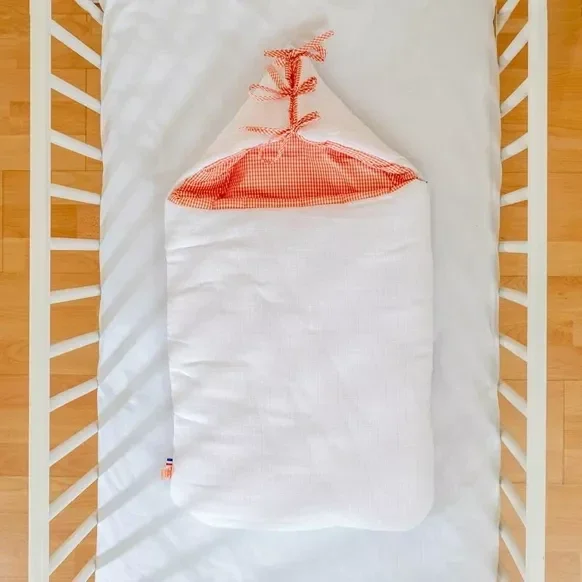 De 0 à 6 mois, notre nid d’ange en coton BIO est modulable grâce à des liens au niveau de la capuche, afin que votre tout-petit puisse bouger sans être entravé.