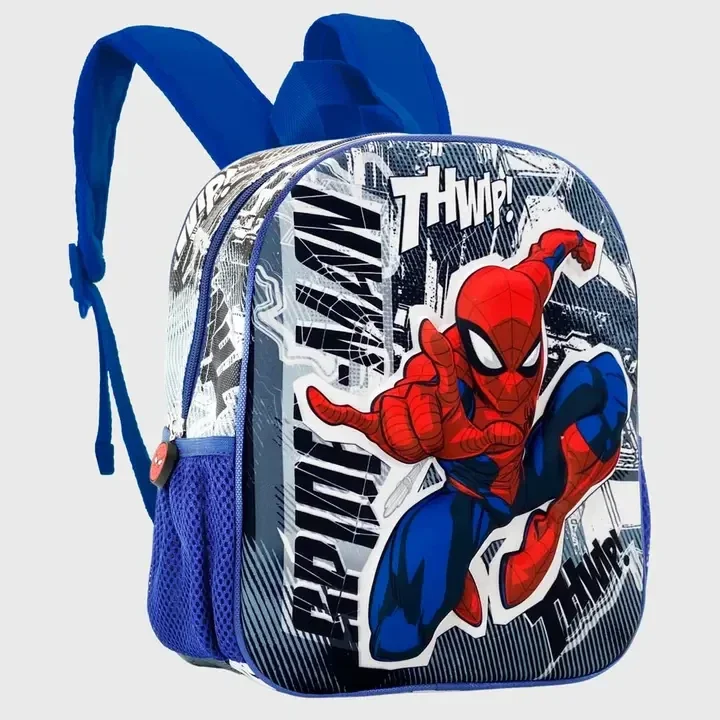 Sac à dos préscolaire avec relief frontal 3D. Compartiment principal avec fermeture à glissière et doublure intérieure. Deux poches latérales en maille.