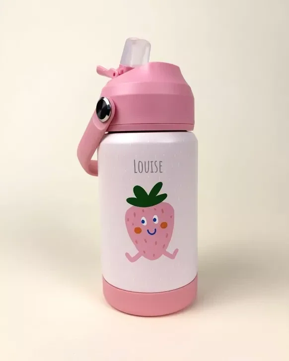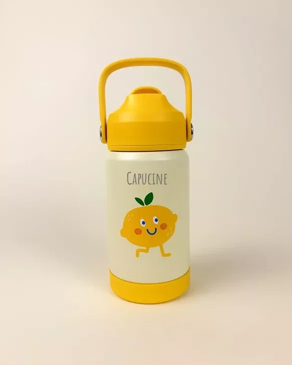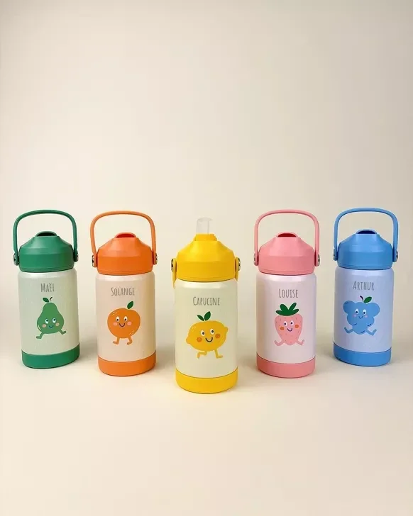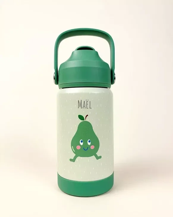 Gourde Enfant en Acier Inoxydable personnalisable La gourde personnalisée, colorée, pratique et saine pour accompagner votre enfant partout ! Offrez à votre enfant une gourde fun, solide et parfaitement adaptée à ses besoins.Avec son design fruité et son format malin, cette gourde inox devient vite l’alliée des goûters, sorties d’école ou balades en famille. 🍃 En inox alimentaire (304) : sans plastique nocif