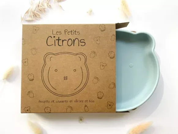 Le manche est en bambou naturel et biodégradable. Ils sont sans produits chimiques et BPA free. L’assiette possède une ventouse, pratique pour éviter les accidents.