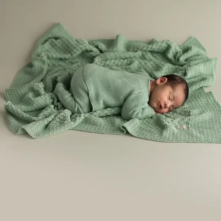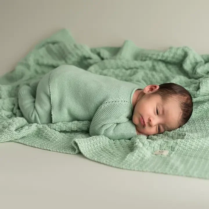 Couverture bébé carrée douce verte
