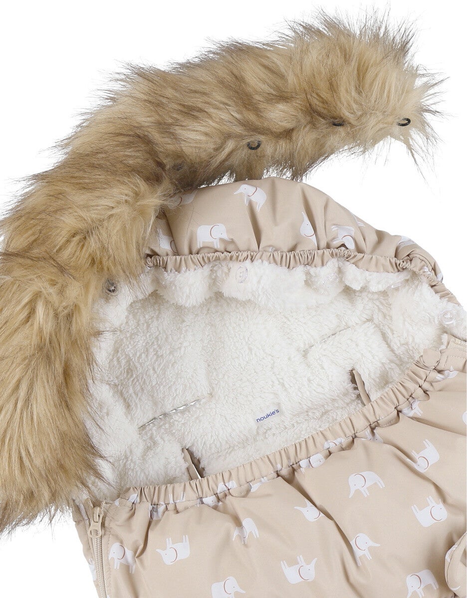 Offrez à votre bébé une chaleur cocooning et une protection maximale avec cette chancelière bébé en toile déperlante, dans une teinte beige, un véritable écrin de douceur et de confort. Doublée de sherpa tout doux et ornée d’un joli imprimé éléphants de la collection Mix & Match, cette chancelière poussette est idéale pour envelopper votre petit explorateur lors de vos promenades en poussette ou en siège auto.