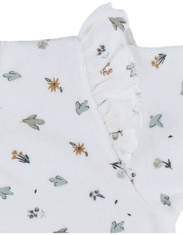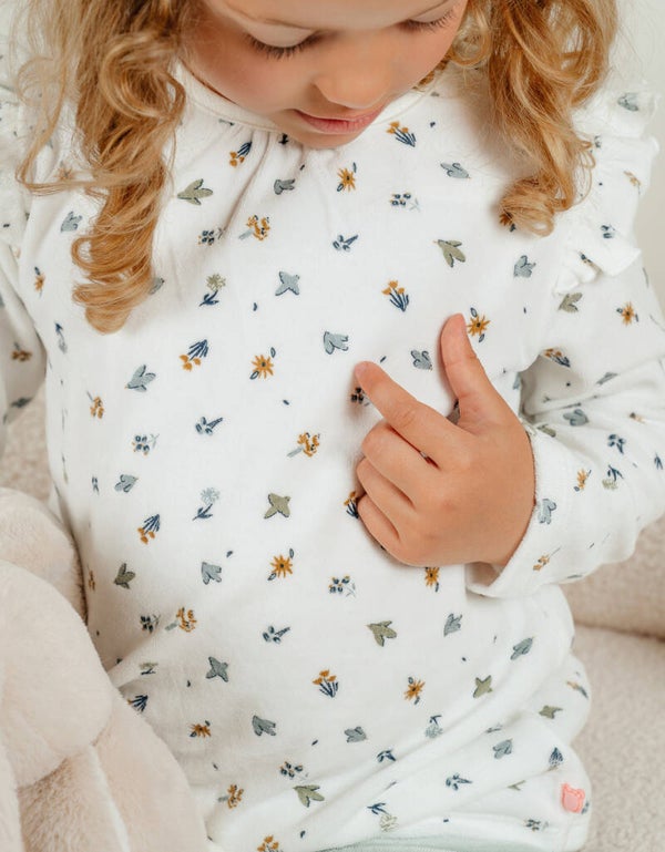 Notre imprimé floral, accompagné de fronces au niveau du col, séduira assurément les petites filles grâce à son côté ludique et charmant.