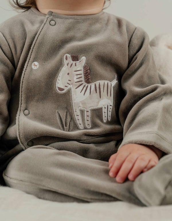 Pyjama bébé en velours kaki avec broderie zèbre NEW