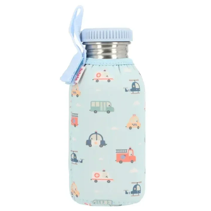 Bouteille Enfant en Acier Inoxydable avec Housse en Néoprène 500 ml de la Collection Rentrée des Classes City Cars de Tutete. L'alternative écologique et saine aux bouteilles en plastique ! La bouteille avec housse en néoprène est parfaite pour l'école, la crèche ou les promenades. Elle est conçue pour garder l'eau fraîche plus longtemps et éviter les goûts indésirables que peuvent transmettre les plastiques. Caractéristiques CE N'EST PAS UNE BOUTEILLE ISOTHERME mais la housse en néoprène aide à maintenir la température plus longtemps Composition : Acier inoxydable 304