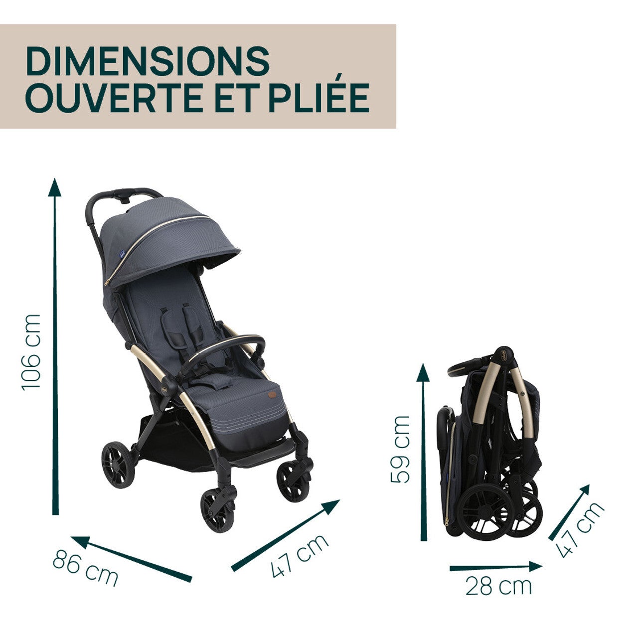 Dimensions en position fermée: 28.0 x 47.0 x 59.0 cm